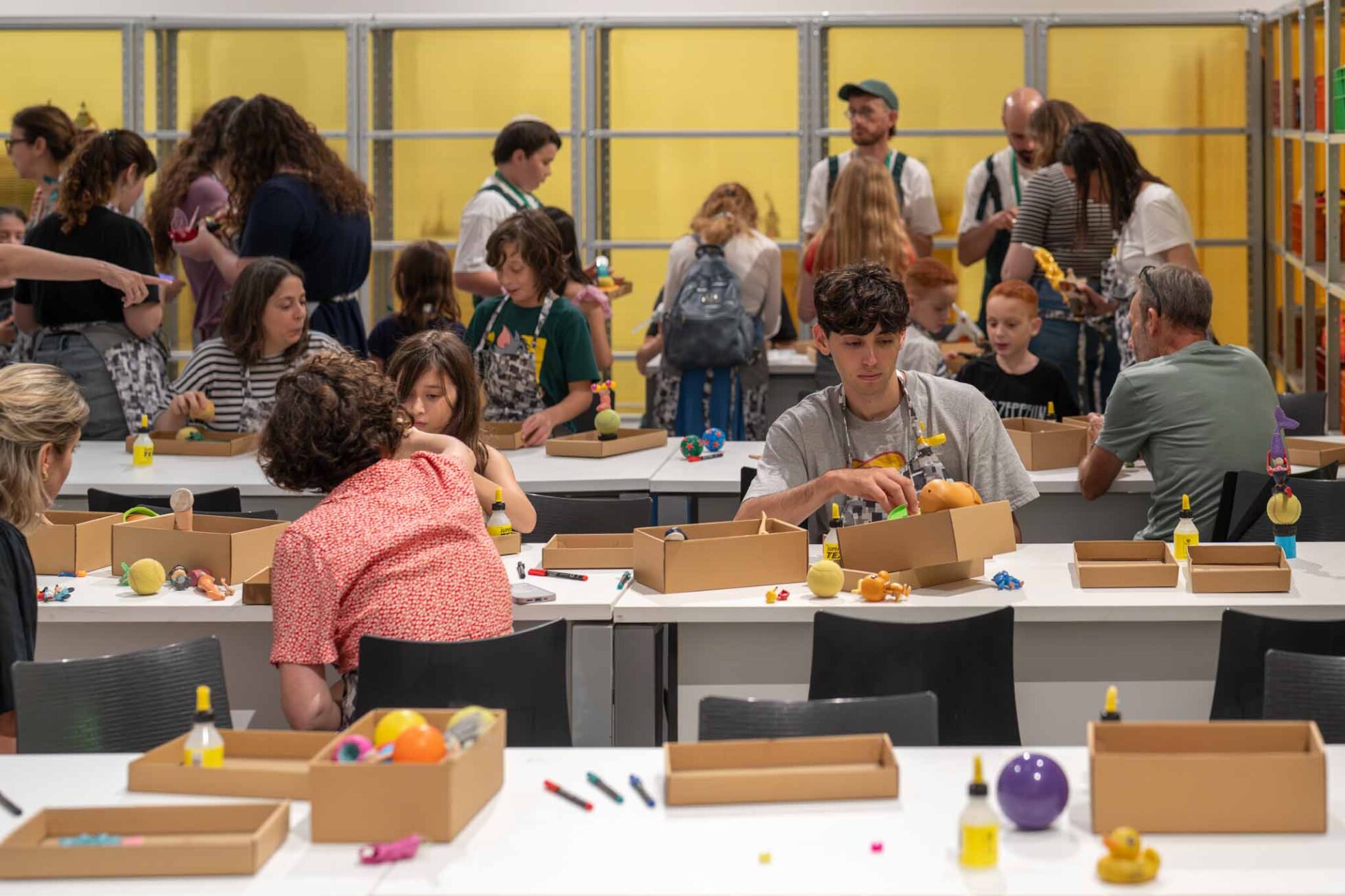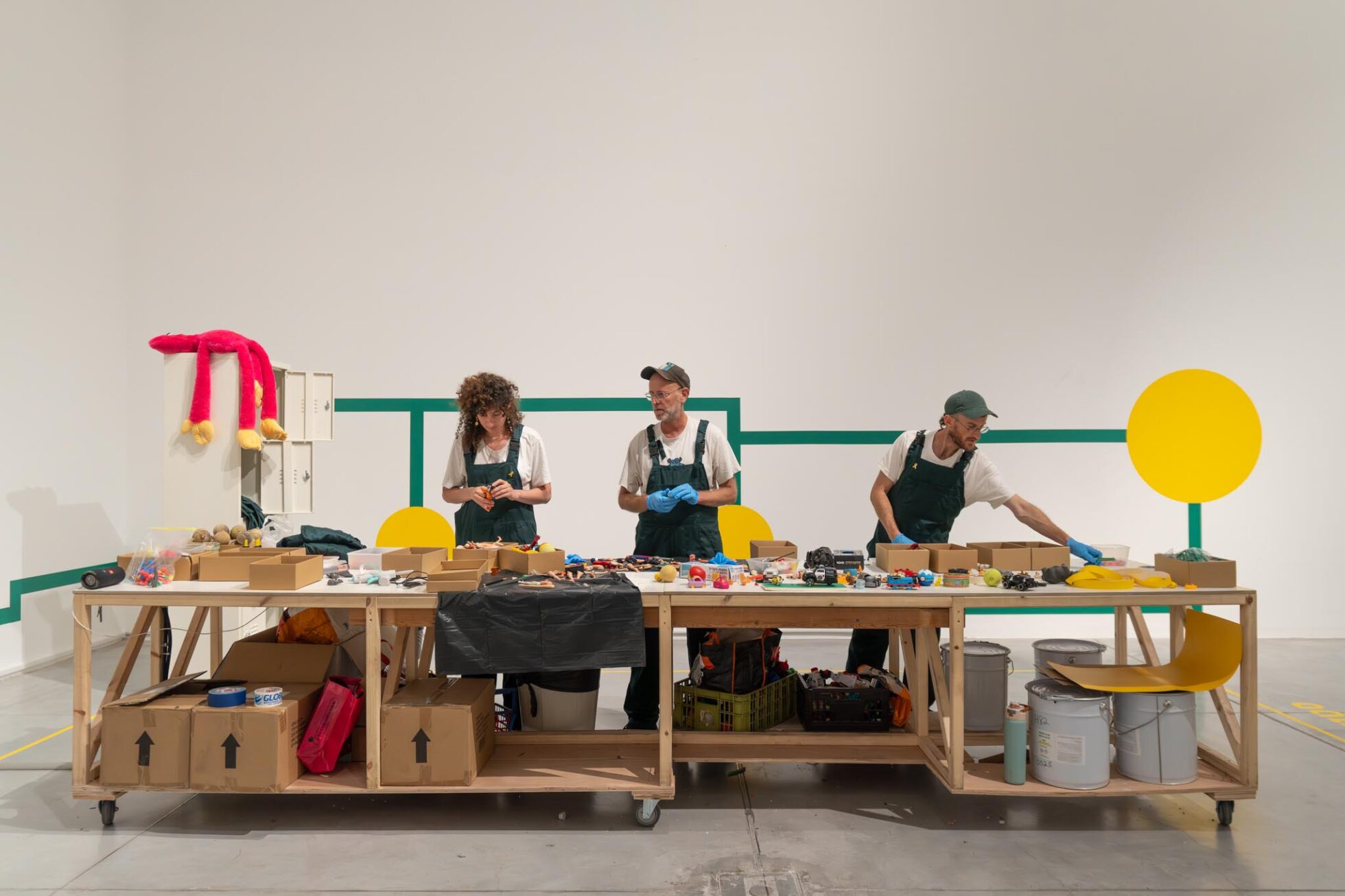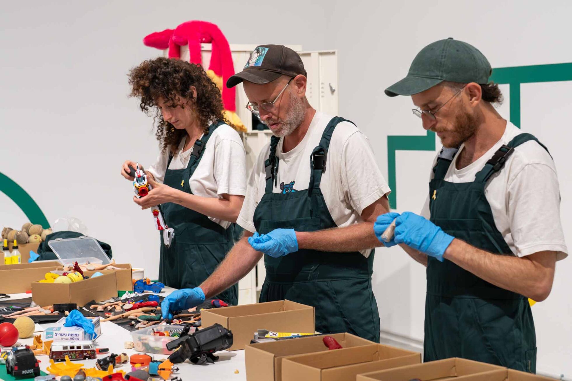 בפברואר האחרון, איתמר קיבל שיחת טלפון מפתיעה ומרגשת ממוזיאון תל אביב לאמנות שמזמינה אותנו לפתוח מפעל בחלל הכי הגדול של המוזיאון. לאחר התרגשות קלה והורדת הפאניקה, התכנסנו להבין איך המפעל יראה, מה המטרה שלו ואיך אנחנו מחדשים את עצמנו ואת המפעל. כשהסתכלנו על המרחב של המוזיאון, על חיי היומיום במציאות החדשה שלנו ועל עצמנו כמיזם שמשתדל להתעסק בנושאים החשובים ביותר, הבנו שהמפעל צריך להיות כמה שיותר השתתפותי וכמה שיותר משקף את פניהם של אנשים, במיוחד שהמעבר בין הכיכר שבחוץ לגלריות שבפנים המוזיאון נוכח בעוצמתו. ומכאן שהמפעל עסק בבנייה מחדש מתוך הישן והמפורק, מתוך השבר והתיקון, הוא עסק בביטוי עצמי של כל משתתף, ביצירה מתוך דמותינו האישית של כל אחד ובתוך מרחב מרובע גדול וריק שהפך למפעל שוקק אדם ועשייה.