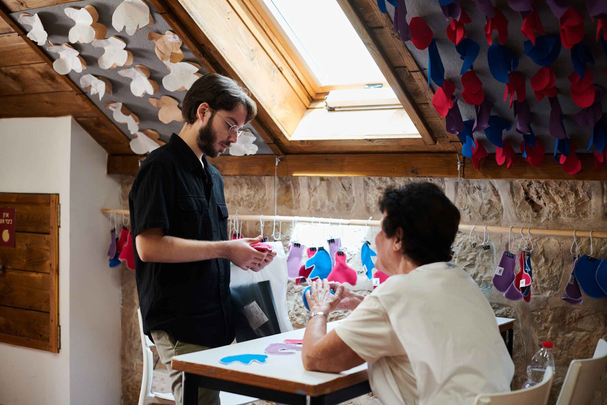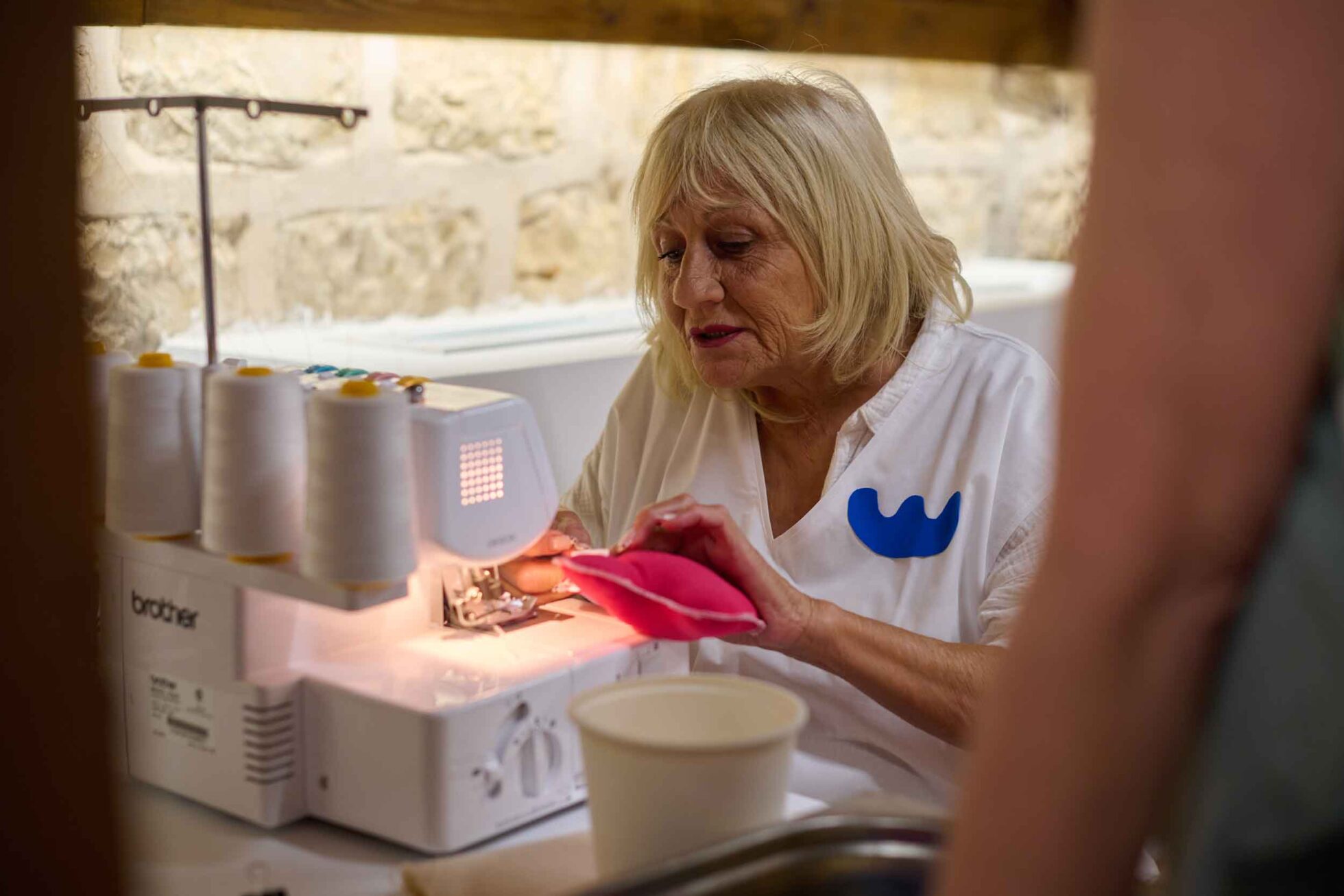 בעליית הגג של בית הנסן הקמנו מפעל השתתפותי ייחודי, שבו המבקרים עברו מסלול לאורך פס ייצור קהילתי. בתחנות השונות הם פגשו את צוות הפועלות, קיבלו ליווי, אוזן קשבת והדרכה אישית, ויצרו אובייקט שמבטא את רגשותיהם.