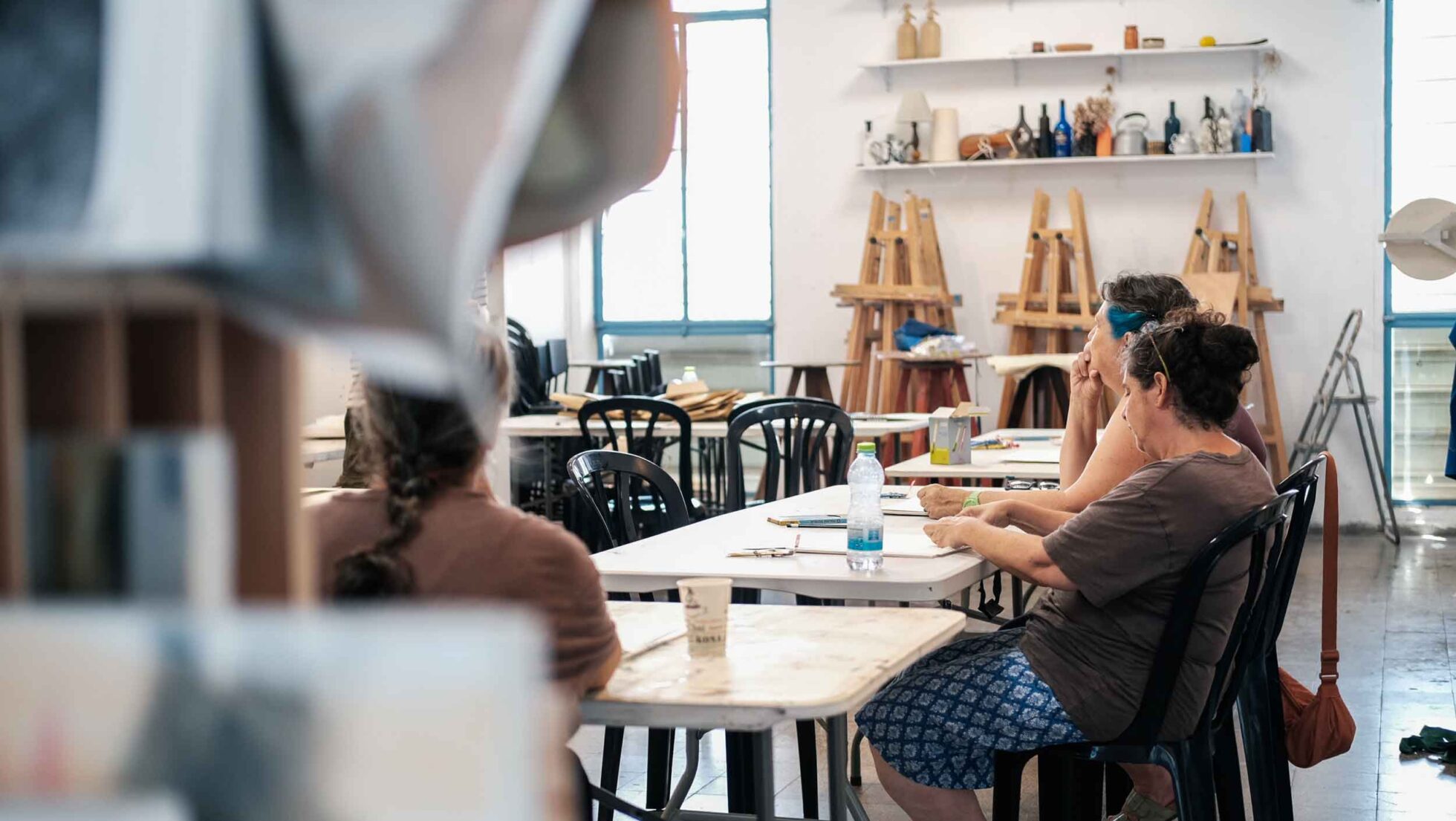 תושבי קיבוץ רעים העתיקו את חייהם מהקיבוץ לעיר. ממדשאות ירוקות למבני בטון, מרכיבת אופניים על שבילים מוכרים לרכיבה על כבישים רעועים, מבתים המחוברים לקרקע לבנייני קומות שכמעט נוגעים בשמיים. במשך שלושה חודשים, קבוצת נשים תושבות הקיבוץ, נפגשה ליצור אמנות מתוך החיים הנוכחים, מתוך האפשרות לדמיין עולם חדש. בכל מפגש הקבוצה נחשפה לטכניקות של אמנות, לחומרים שונים, לאמנים ולאמניות ומתוך הלמידה והמחקר יצרו עבודות אישיות המתחברות לכדי עולם פנימי אחד משותף.